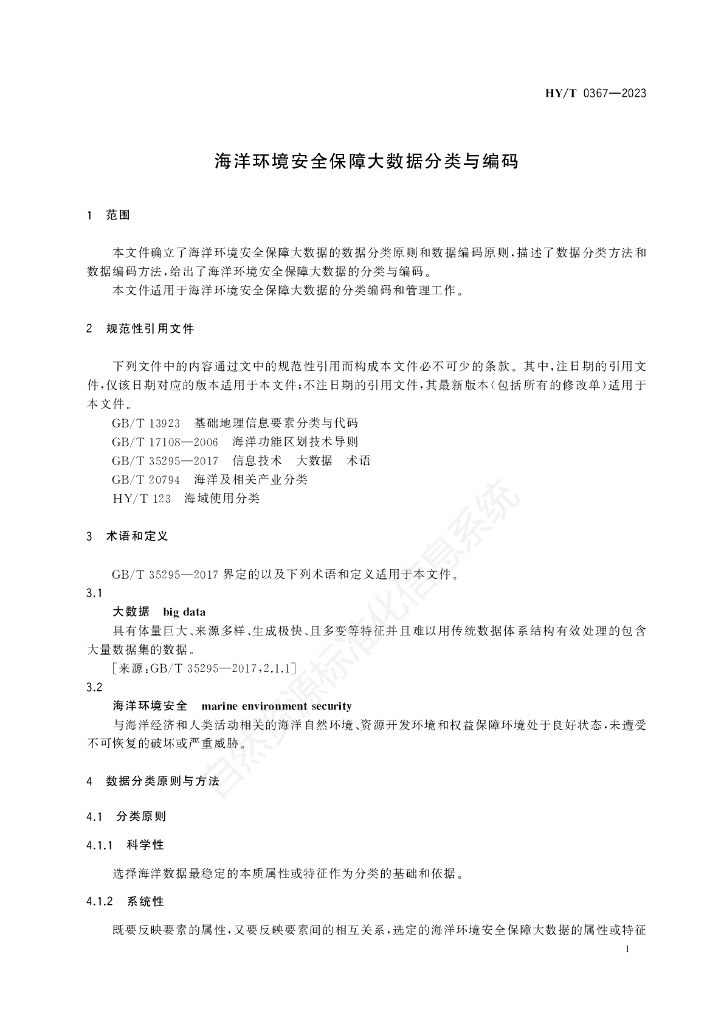 HY/T 0367-2023 海洋环境安全保障大数据分类与编码