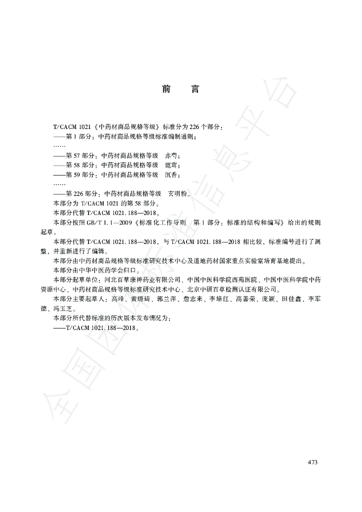 河北百草康神药业有限公司、中国中医科学院西苑医院、 中国中医科学院中药 资源中心、中药材商品规格等级标准研究技术中心、北京中研百草检测认证有限公司