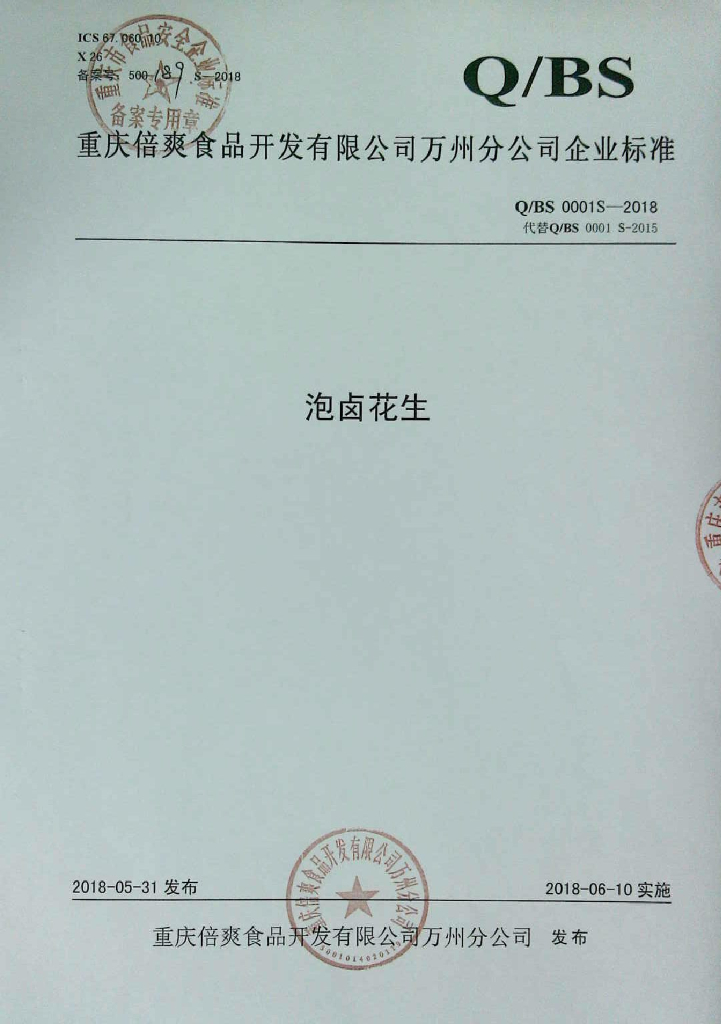 Q/BS 0001S-2018 泡卤花生