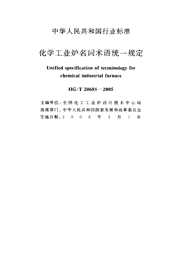 HG/T 20685-2005 化学工业炉名词术语统一规定