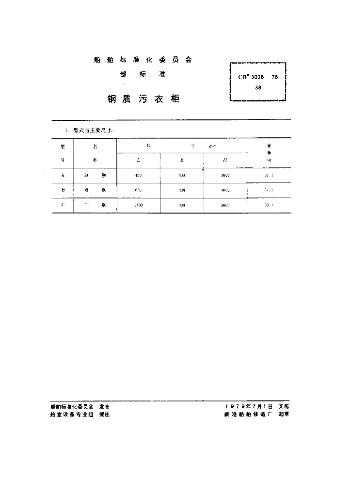 CB 3026-1978 钢质污衣柜