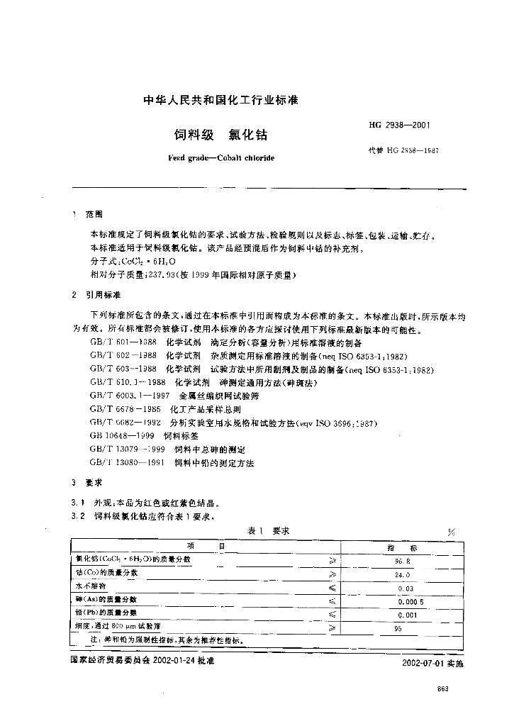 HG 2938-2001 饲料级 氯化钴