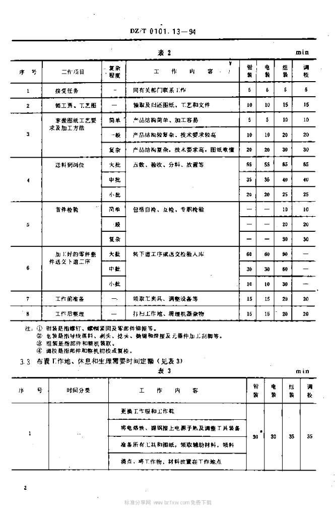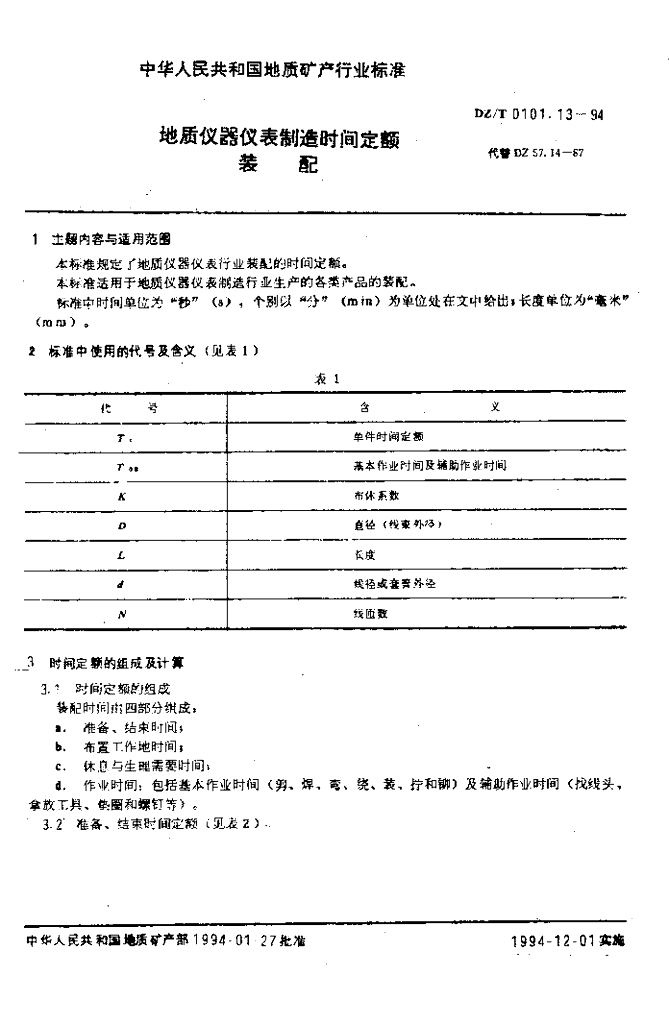 DZ/T 0101.13-1994 地质仪器仪表制造时间定额装配