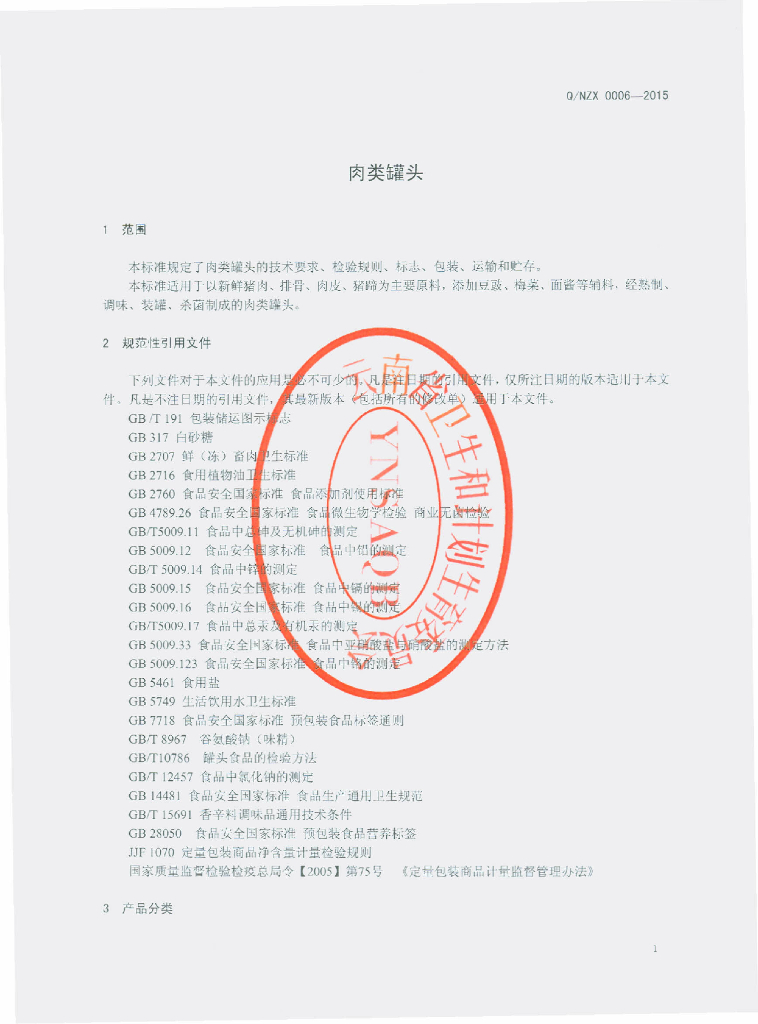 Q/NZX 0006-2015 云南玉溪华宁宁州香食品有限责任公司 肉类罐头