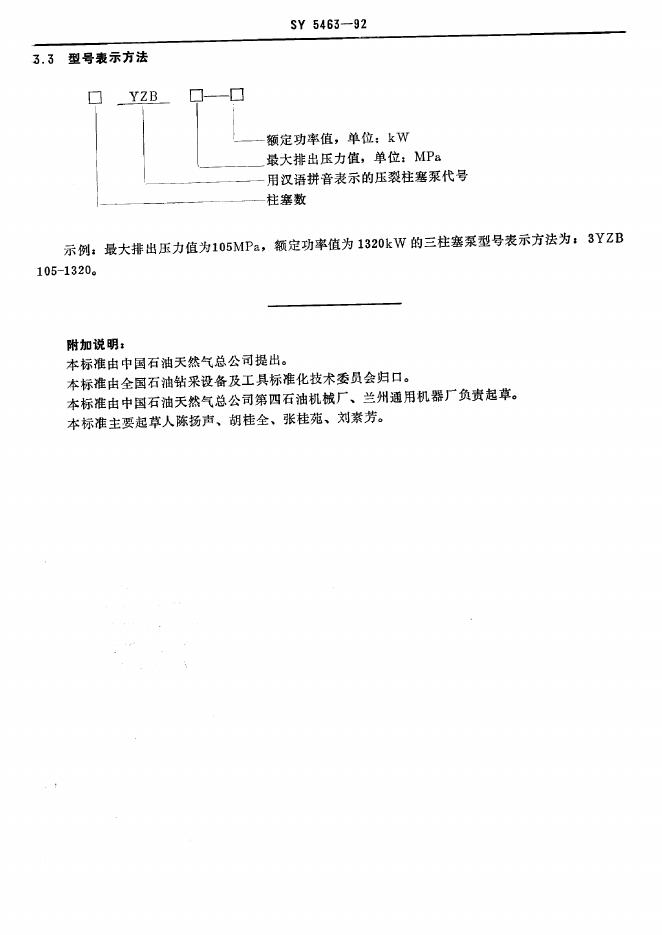 SY/T 5463-1992 油田压裂用柱塞泵形式与基本参数