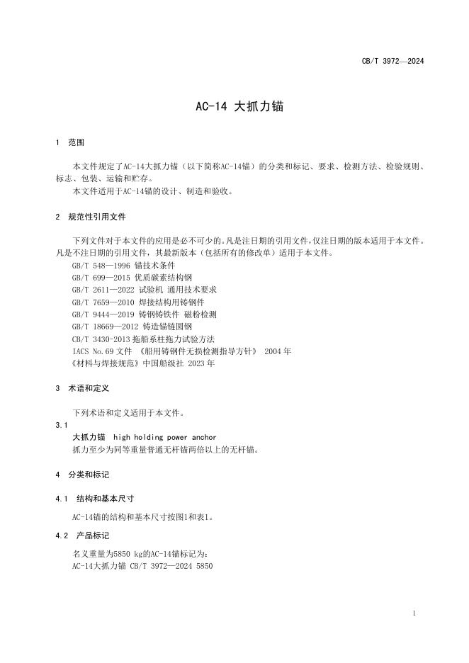 CB/T 3972-2025 AC-14 大抓力锚