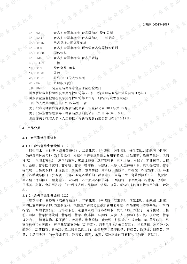 Q/MBF 0001S-2019 维生素饮料