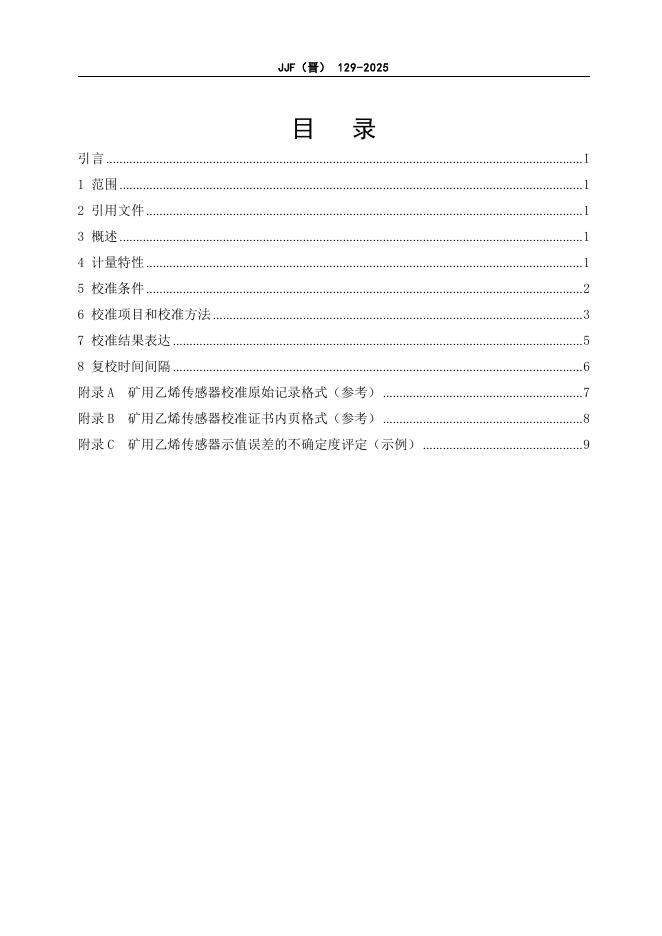 JJF(晋)129-2025 矿用乙烯传感器校准规范