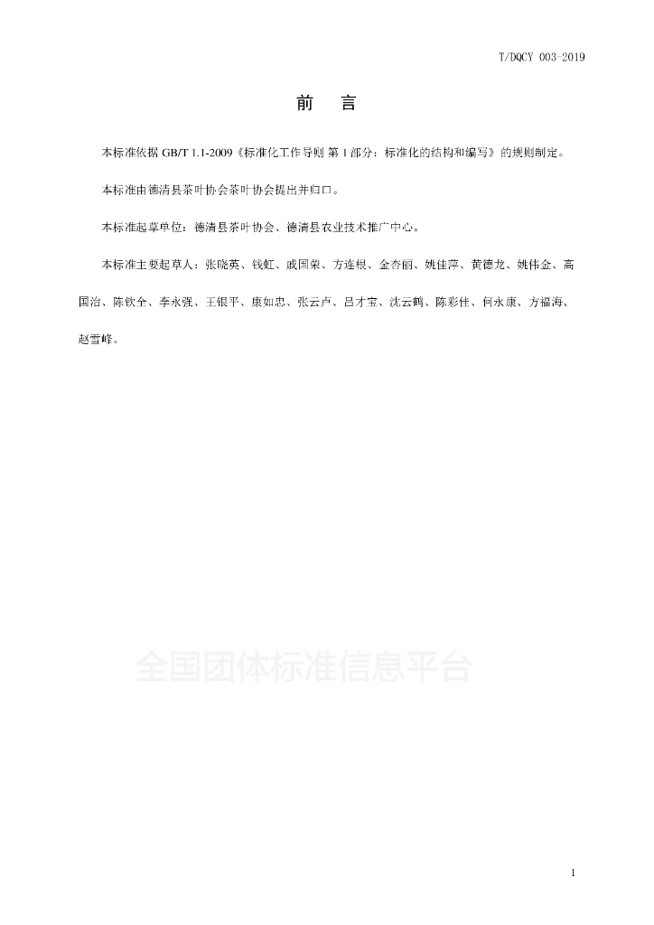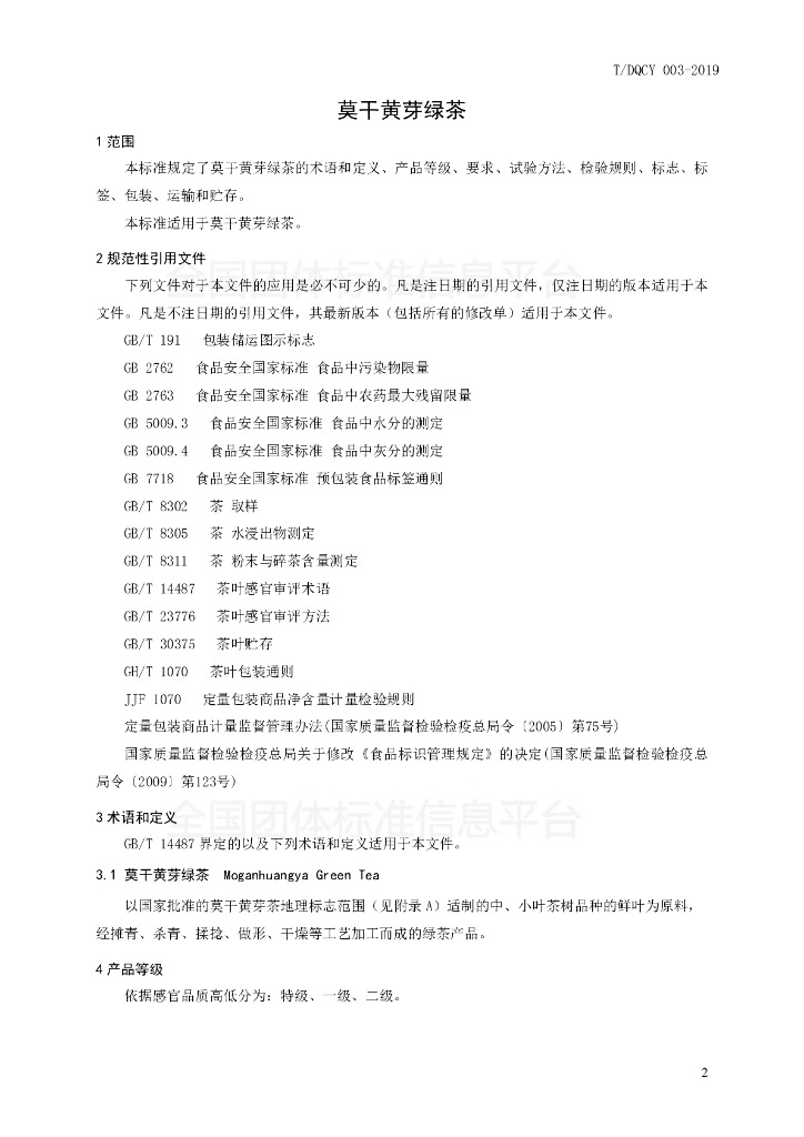 T/DQCY 003-2019 莫干黄芽绿茶