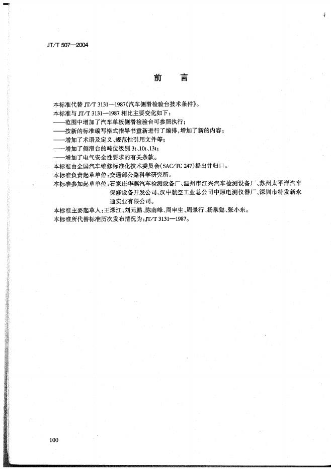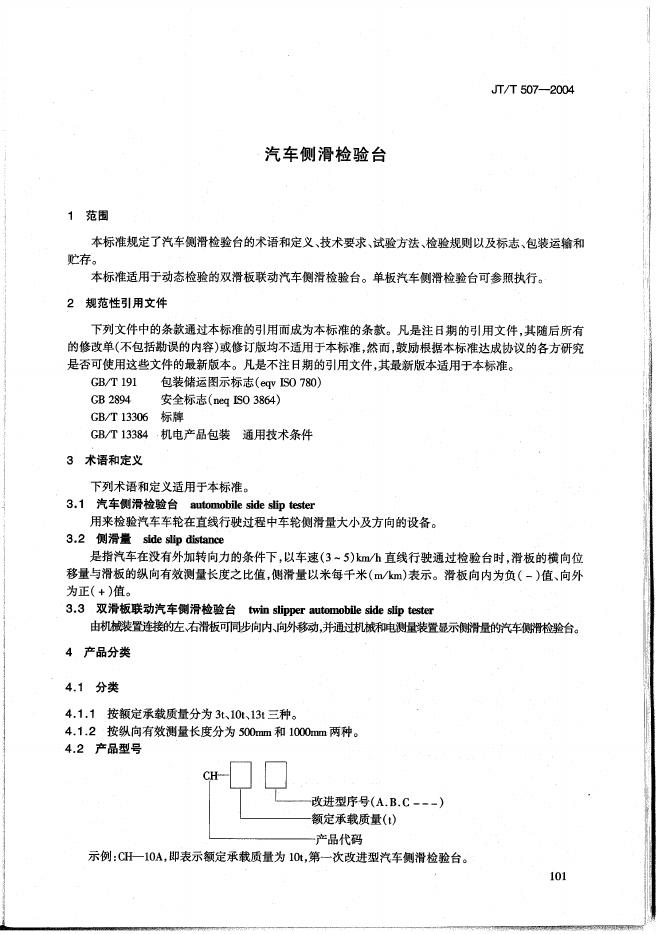 JT/T 507-2004 汽车侧滑检验台