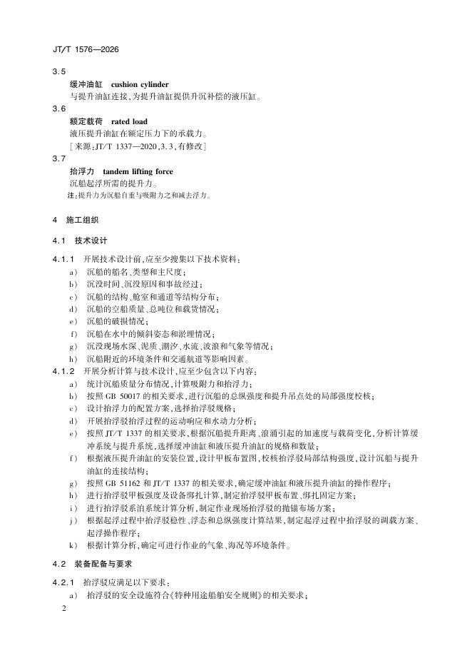 JT/T 1576-2026 双驳抬浮打捞沉船作业规程