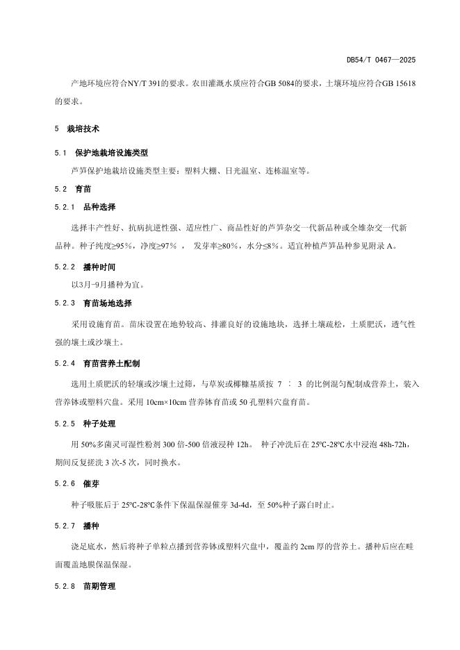 DB54/T 0467-2025 保护地芦笋栽培技术规程