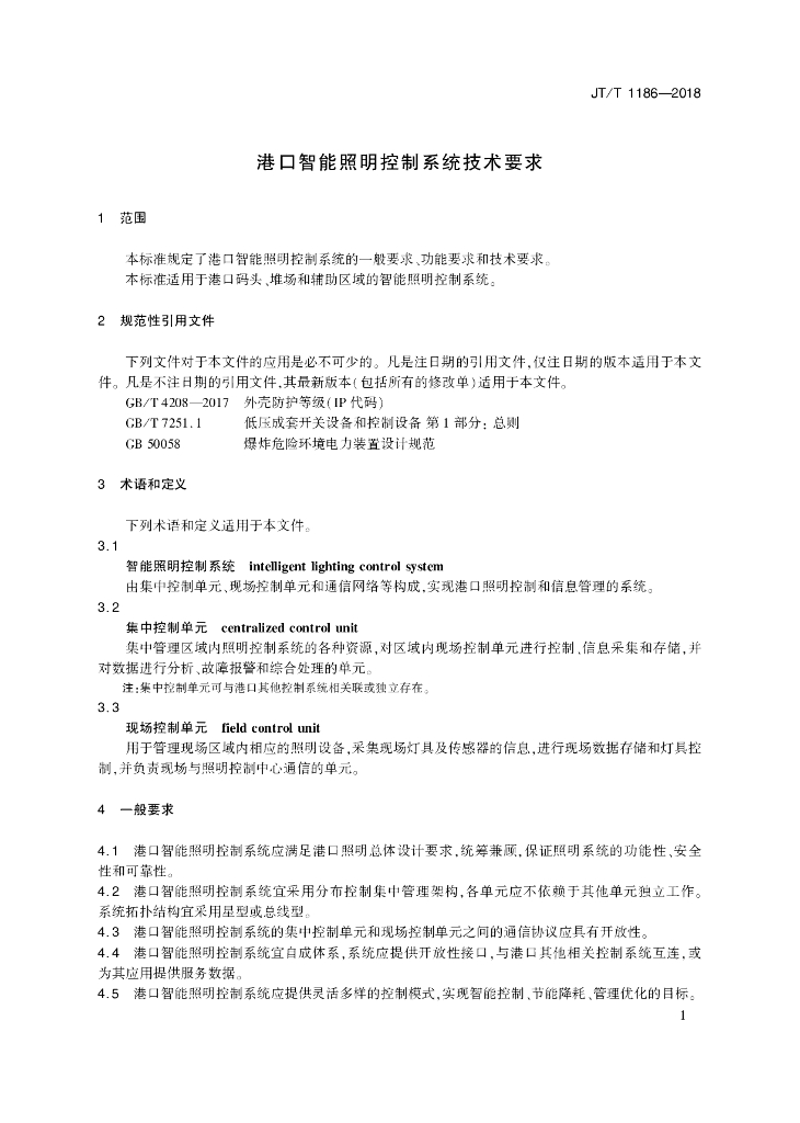 JT/T 1186-2018 港口智能照明控制系统技术要求