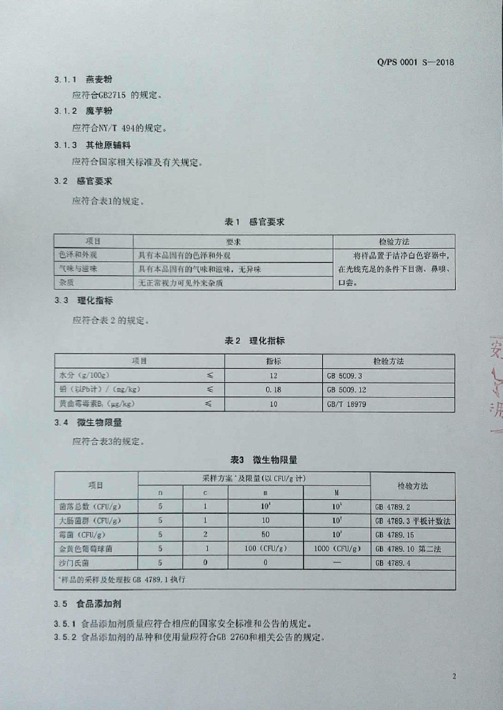 Q/PS 0001S-2018 冲调粮食制品