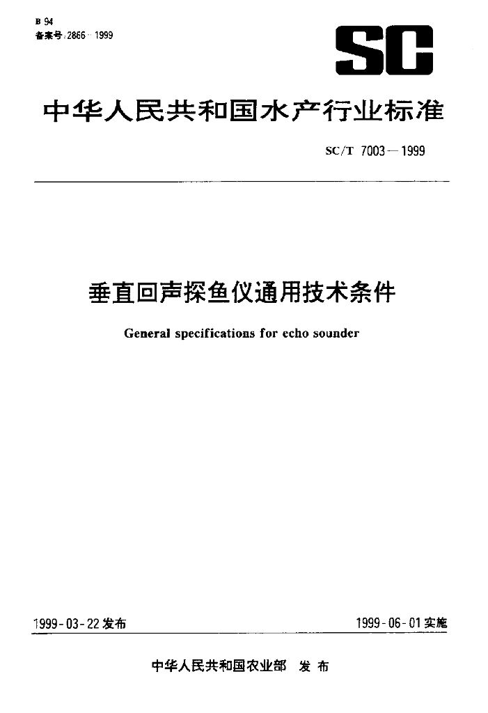 SC/T 7003-1999 垂直回声探鱼仪通用技术条件