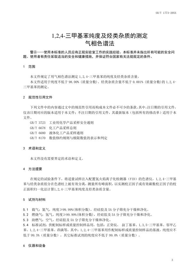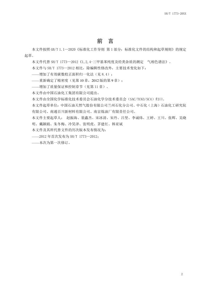 SH/T 1773-2025 1,2,4-三甲基苯纯度及烃类杂质的测定 气相色谱法