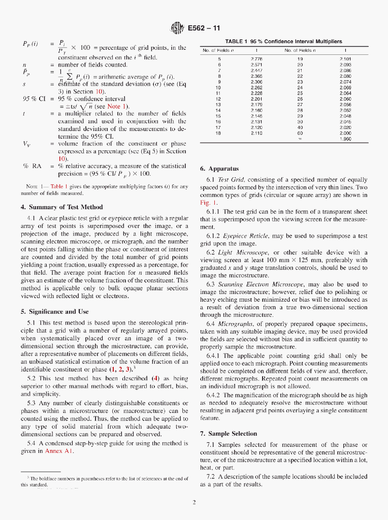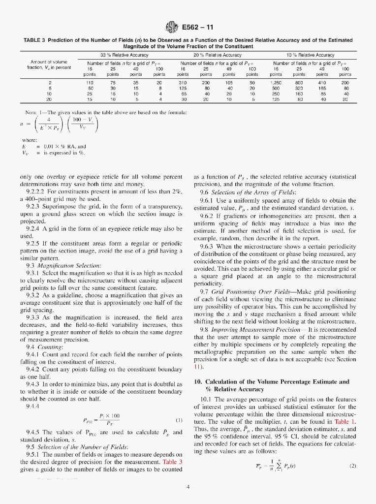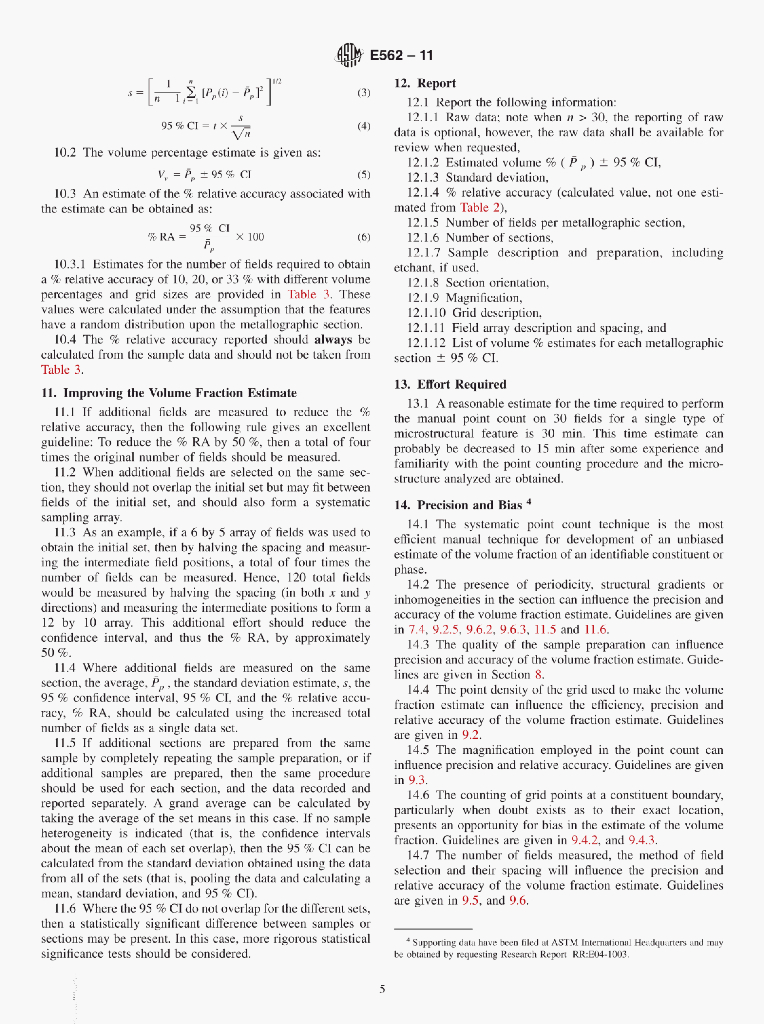 ASTM E562-11 Standard Test Method for Determining Volume Fraction by Systematic Manual PointCount