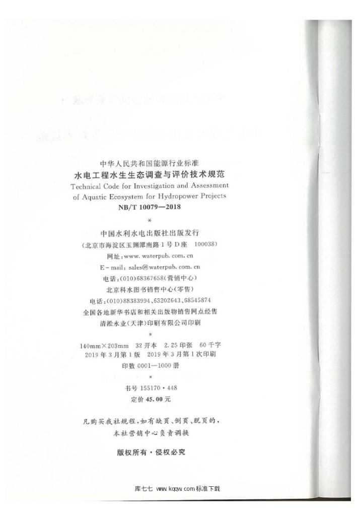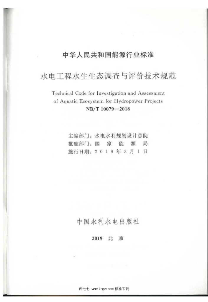 NB/T 10079-2018 水电工程水生生态调查与评价技术规范