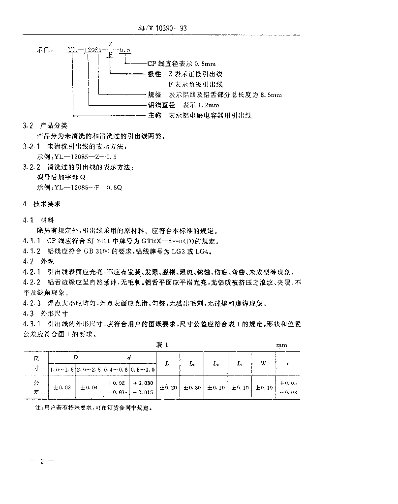 SJ/T 10390-1993 铝电解电容引出线