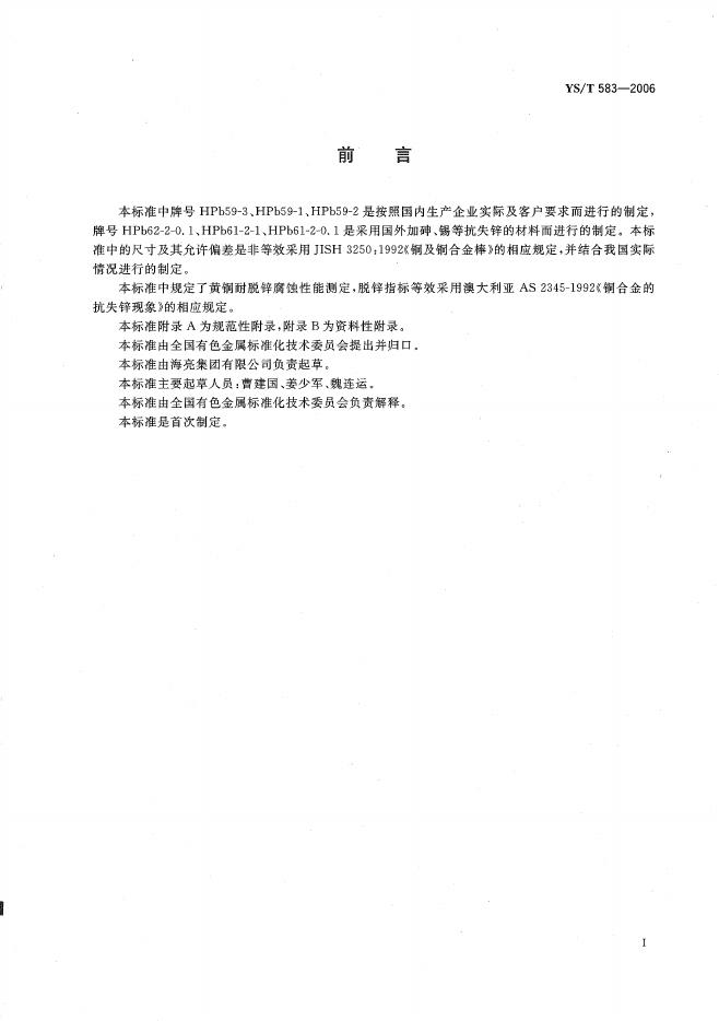 YS/T 583-2006 热锻水暖管件用黄铜棒