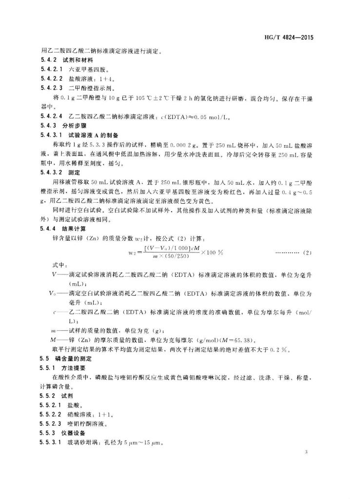 HG/T 4824-2015 工业磷酸锌