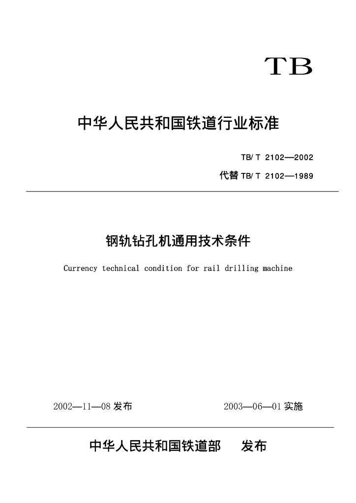 TB/T 2102-2002 钢轨钻孔机通用技术条件