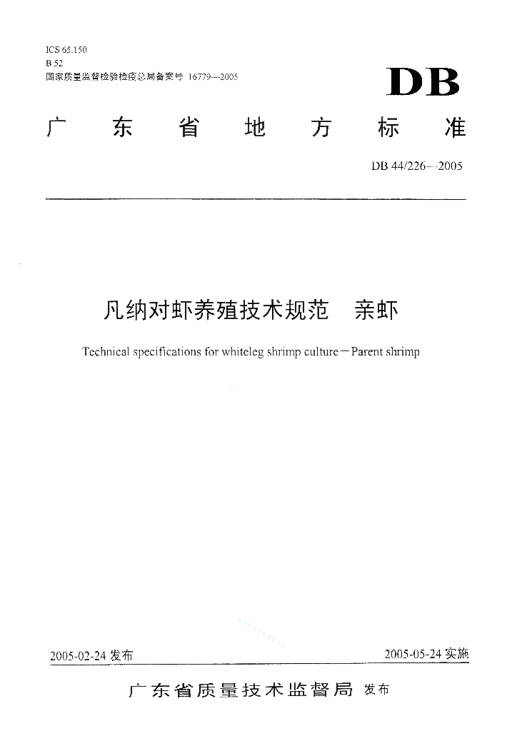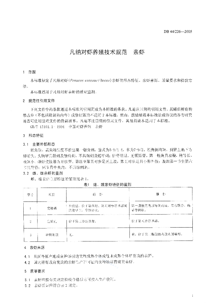 DB44/T 226-2005 凡纳对虾养殖技术规范 亲虾