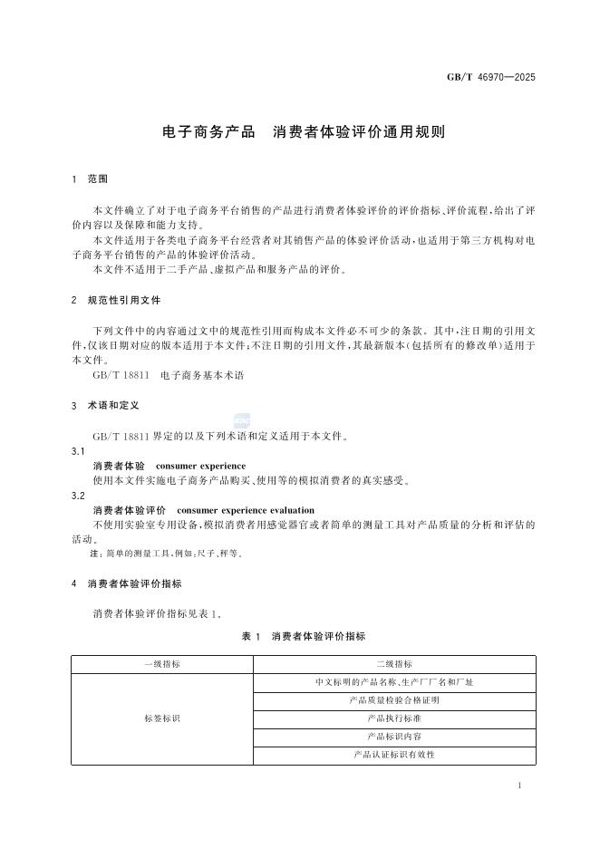 GB/T 46970-2025 电子商务产品 消费者体验评价通用规则