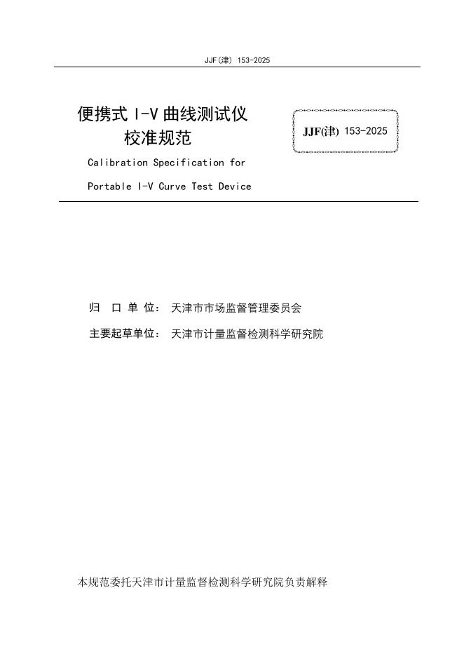 JJF(津)153-2025 便携式I-V曲线测试仪校准规范