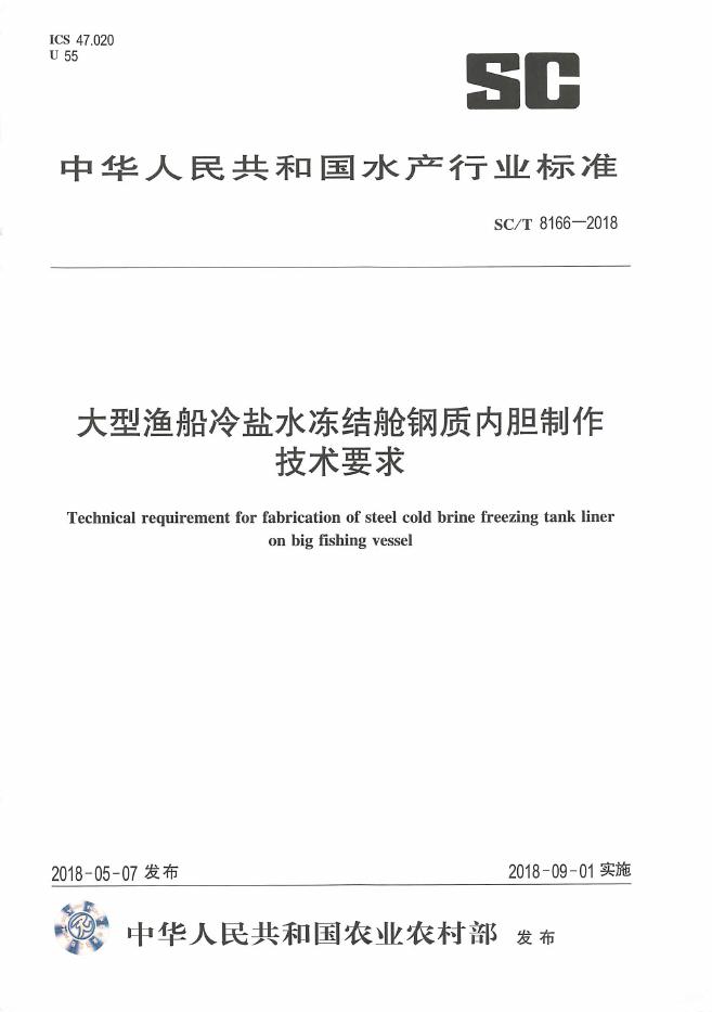 SC/T 8166-2018 大型渔船冷盐水冻结舱钢质内胆制作技术要求