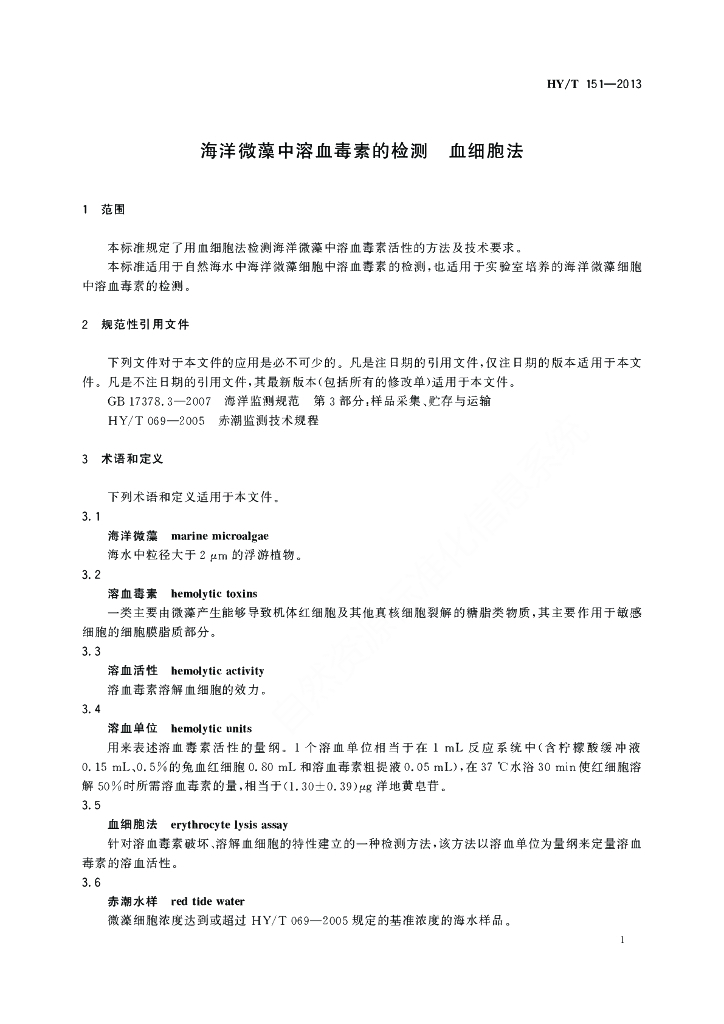 HY/T 151-2013 海洋微藻中溶血毒素的检测 血细胞法