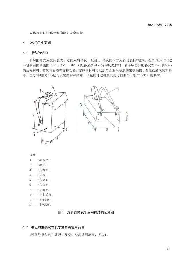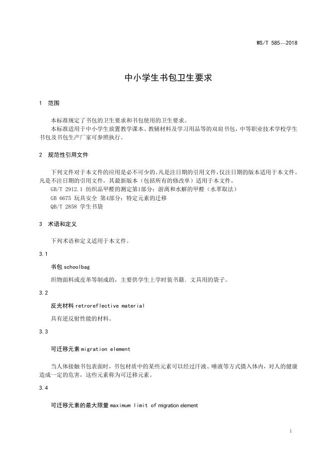 WS/T 585-2018 中小学生书包卫生要求