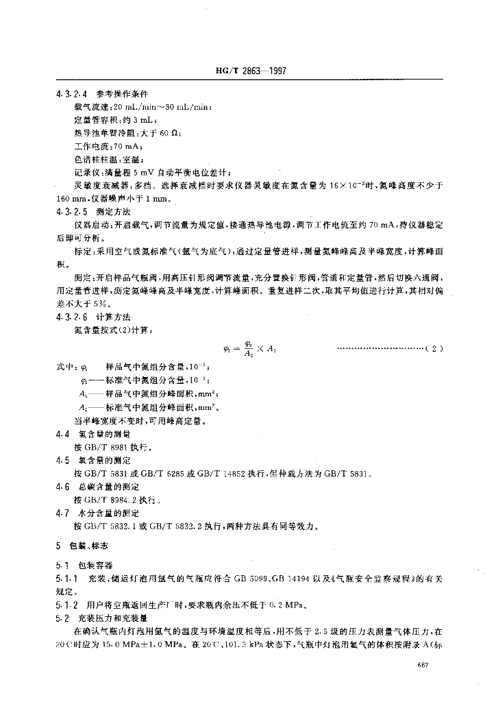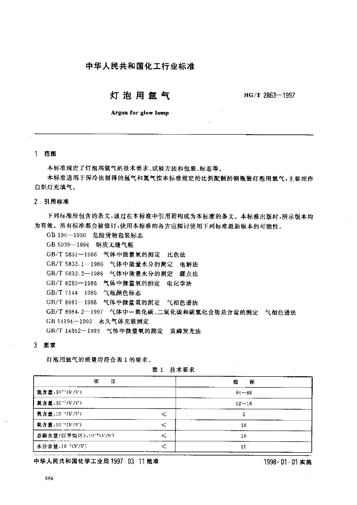 HG/T 2863-1997 灯泡用氩气