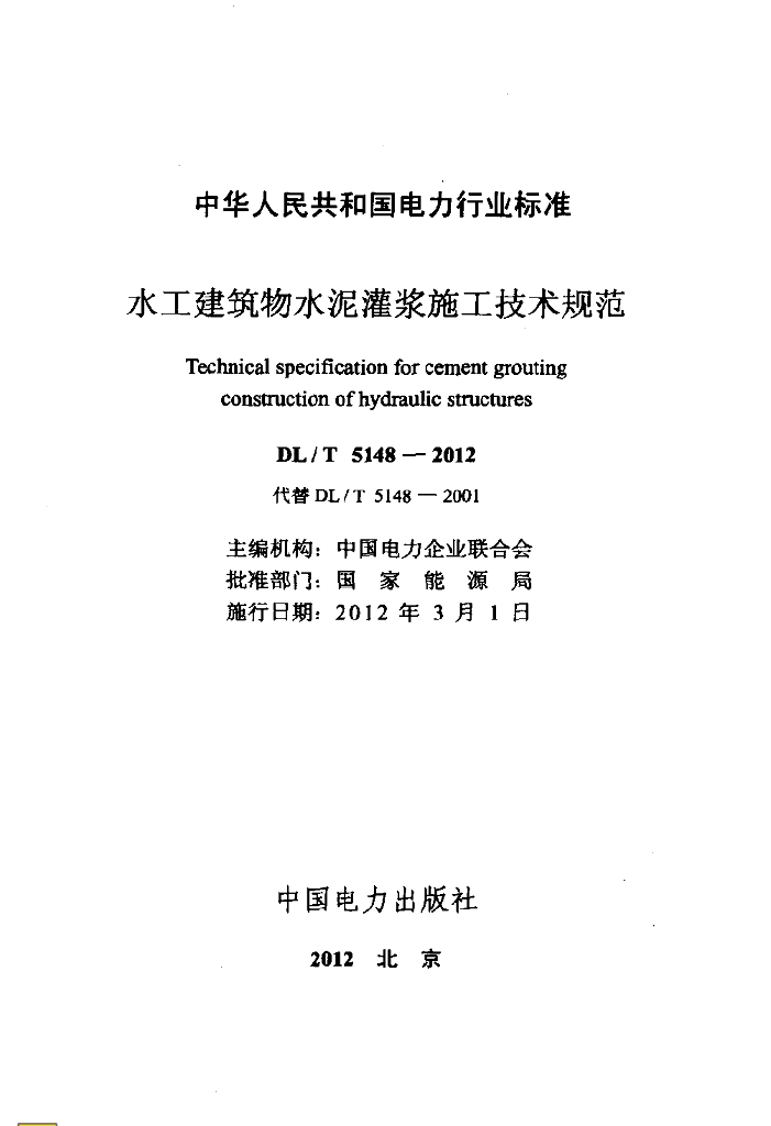 DL/T 5148-2012 水工建筑物水泥灌浆施工技术规范(附条文说明)