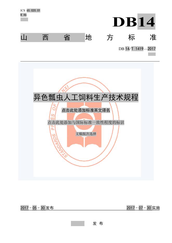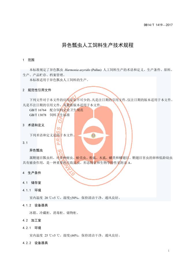 DB14/T 1419-2017 异色瓢虫人工饲料生产技术规程