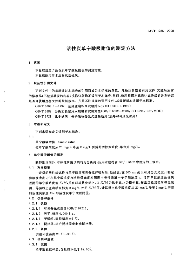 LY/T 1786-2008 活性炭单宁酸吸附值的测定方法