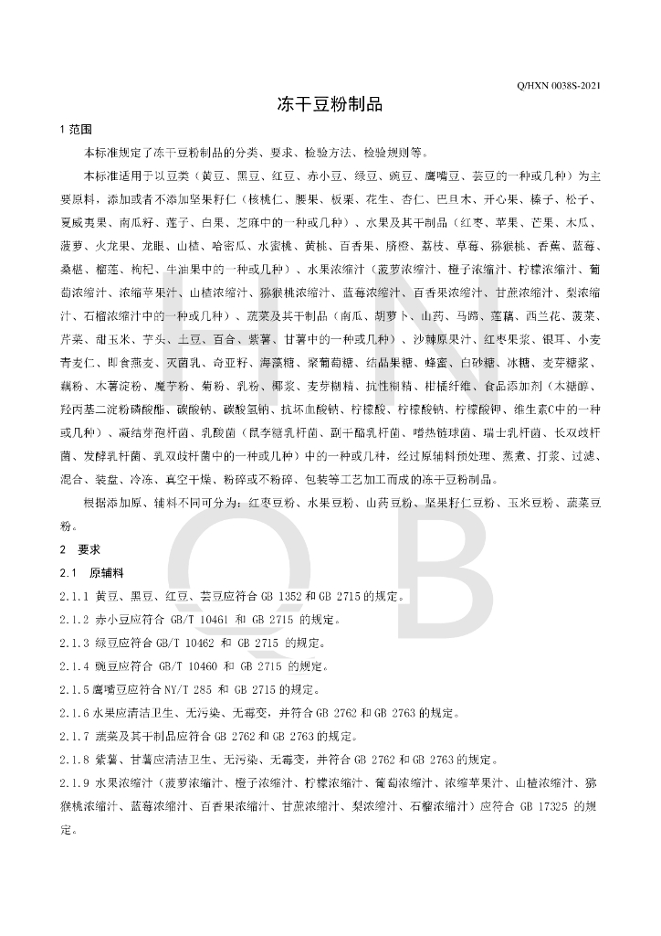 Q/HXN 0038S-2021 冻干豆粉制品