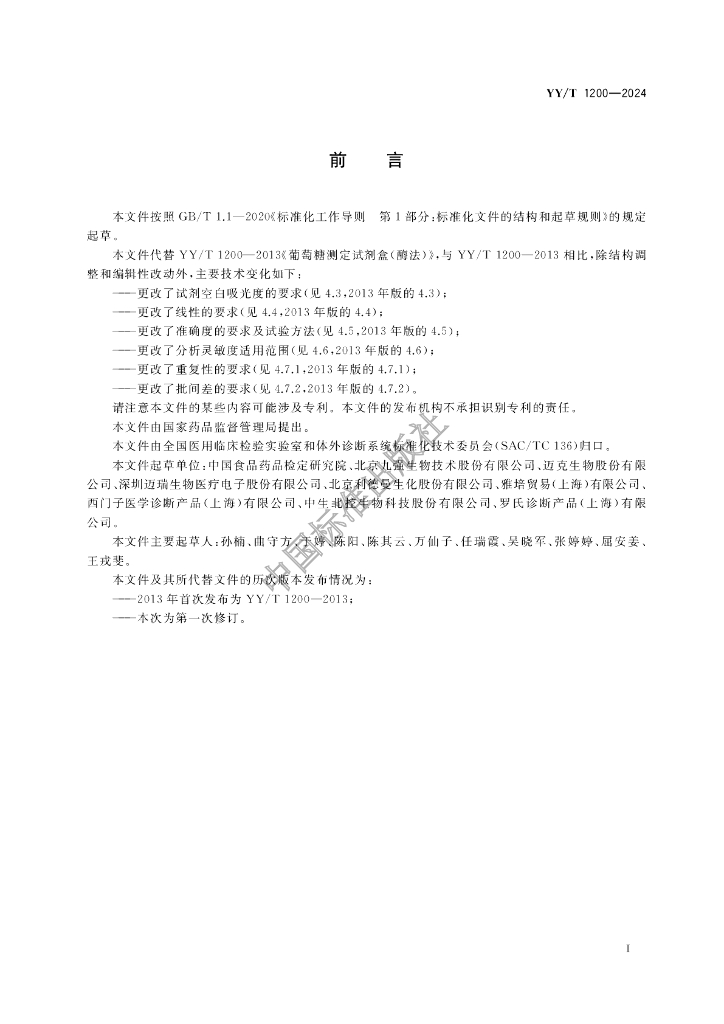 - 代替标准:YY/T 1200-2013