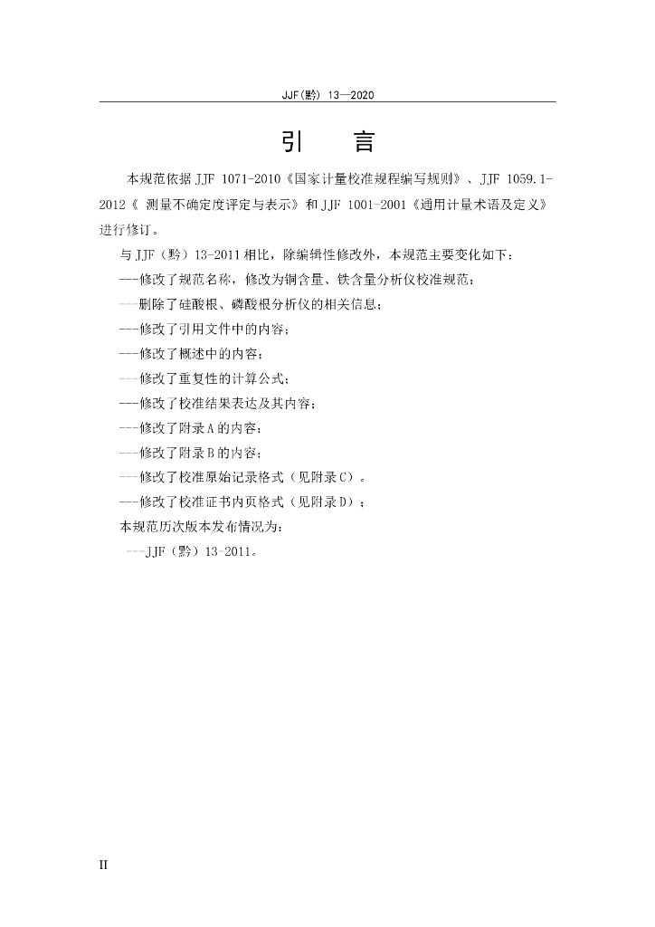 JJF(黔)13-2020 铜含量、铁含量分析仪校准规范