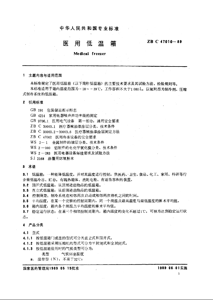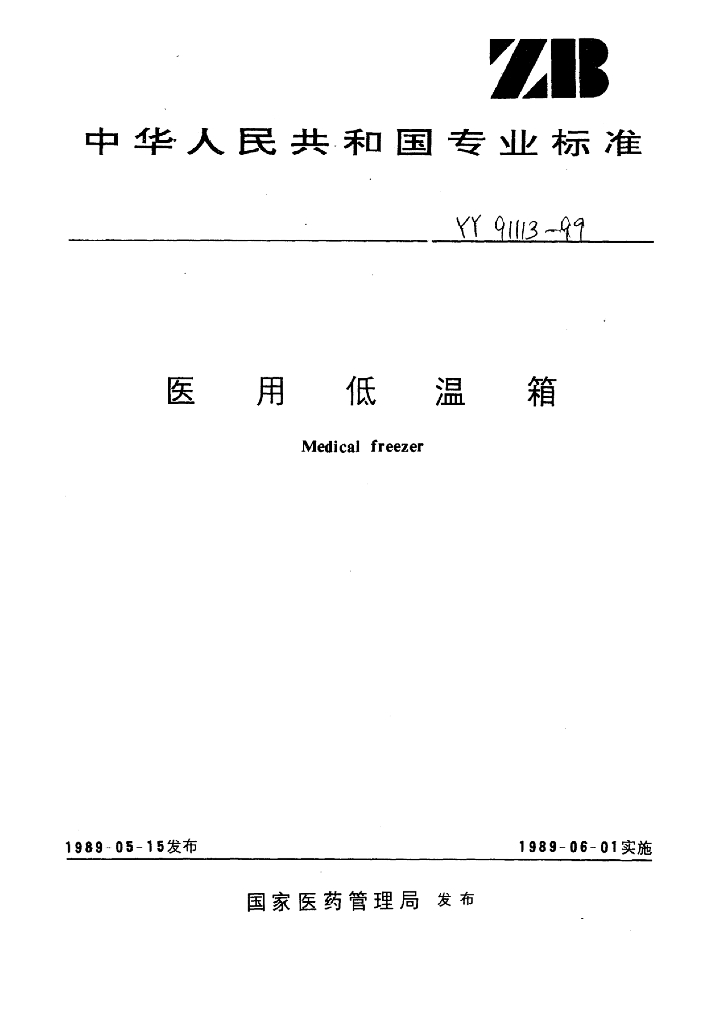 YY 91113-1999 医用低温箱
