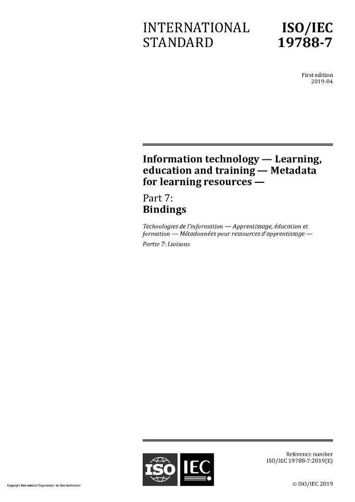 ISO/IEC 19788-7-2019 信息技术 学习、教育和培训学习资源元数据 第7部分:绑定