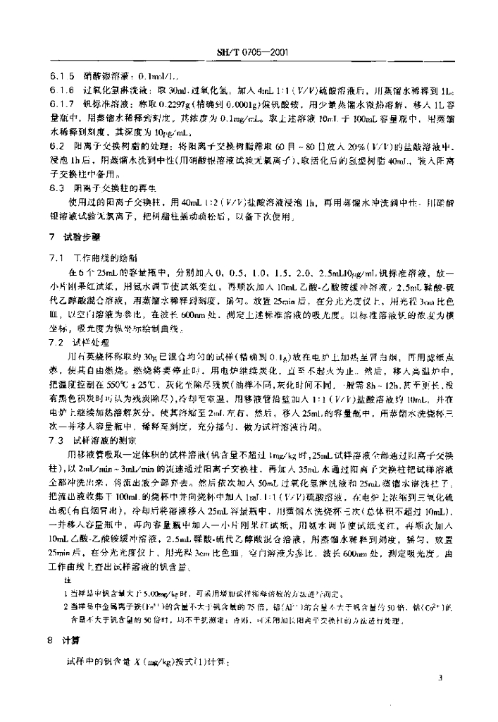 SH/T 0705-2001 重质油中钒含量测定法(分光光度法)