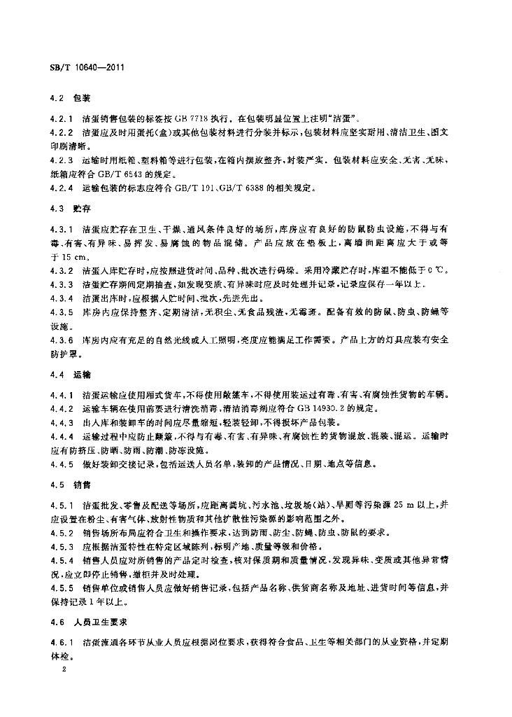 SB/T 10640-2011 洁蛋流通技术规范