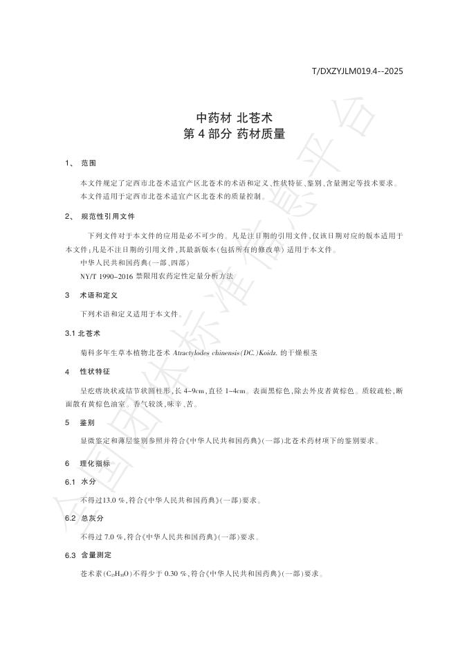 T/DXZYJLM 019.4-2025 中药材 北苍术 第4部分:药材质量