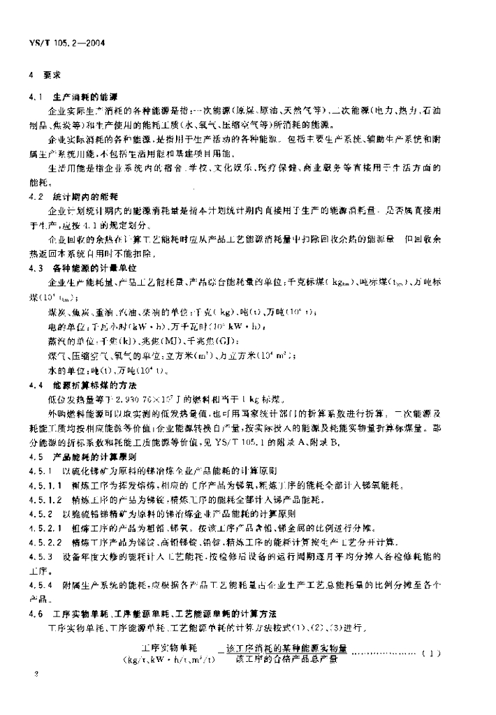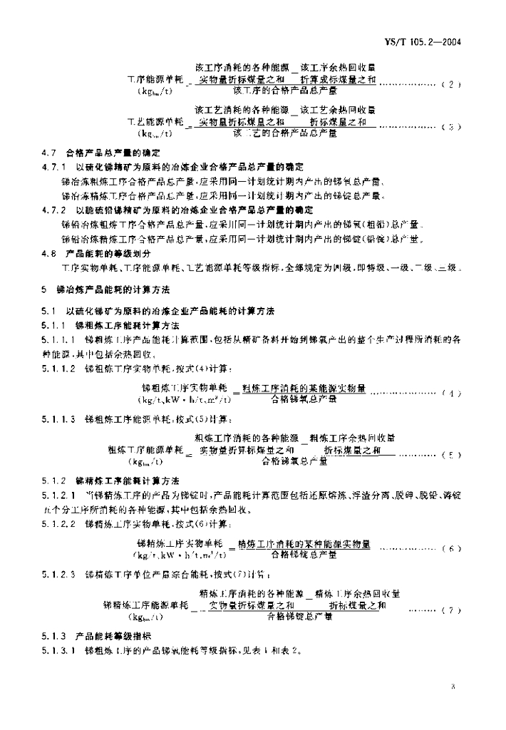 YS/T 105.2-2004 锡、锑冶炼企业产品能耗 第2部分:锑冶炼企业产品能耗