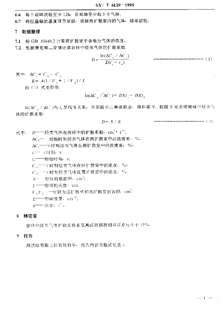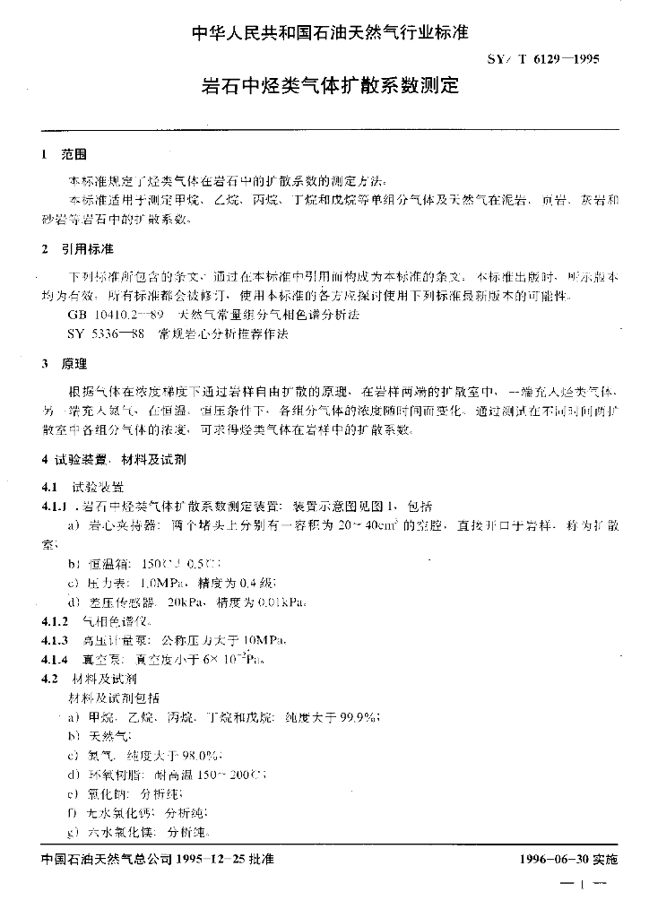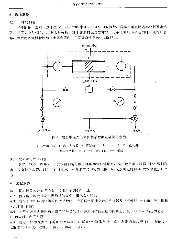 SY/T 6129-1995 岩石中烃类气体扩散系数测定