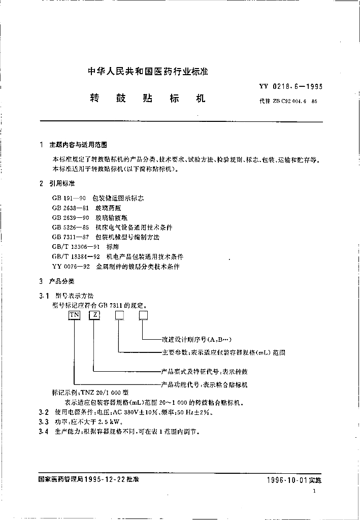 YY 0218.6-1995 转鼓贴标机
