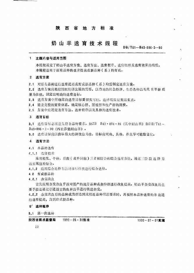 DB61/T B43.096.3-1990 奶山羊选育技术规程