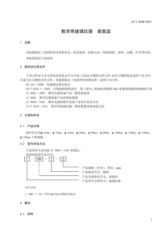 JY/T 0430-2011 教学用玻璃仪器 表面皿