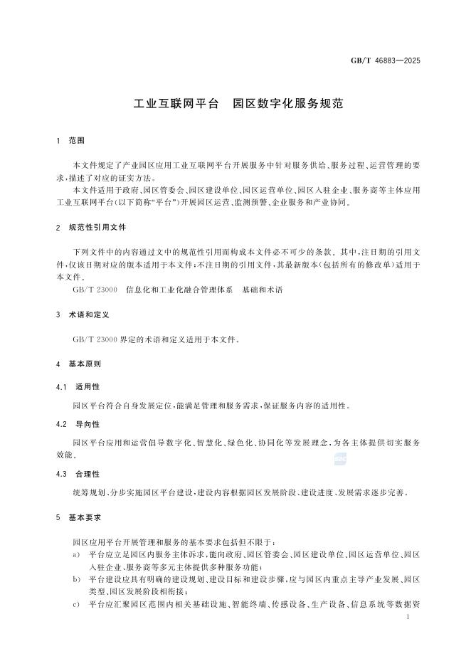 GB/T 46883-2025 工业互联网平台 园区数字化服务规范